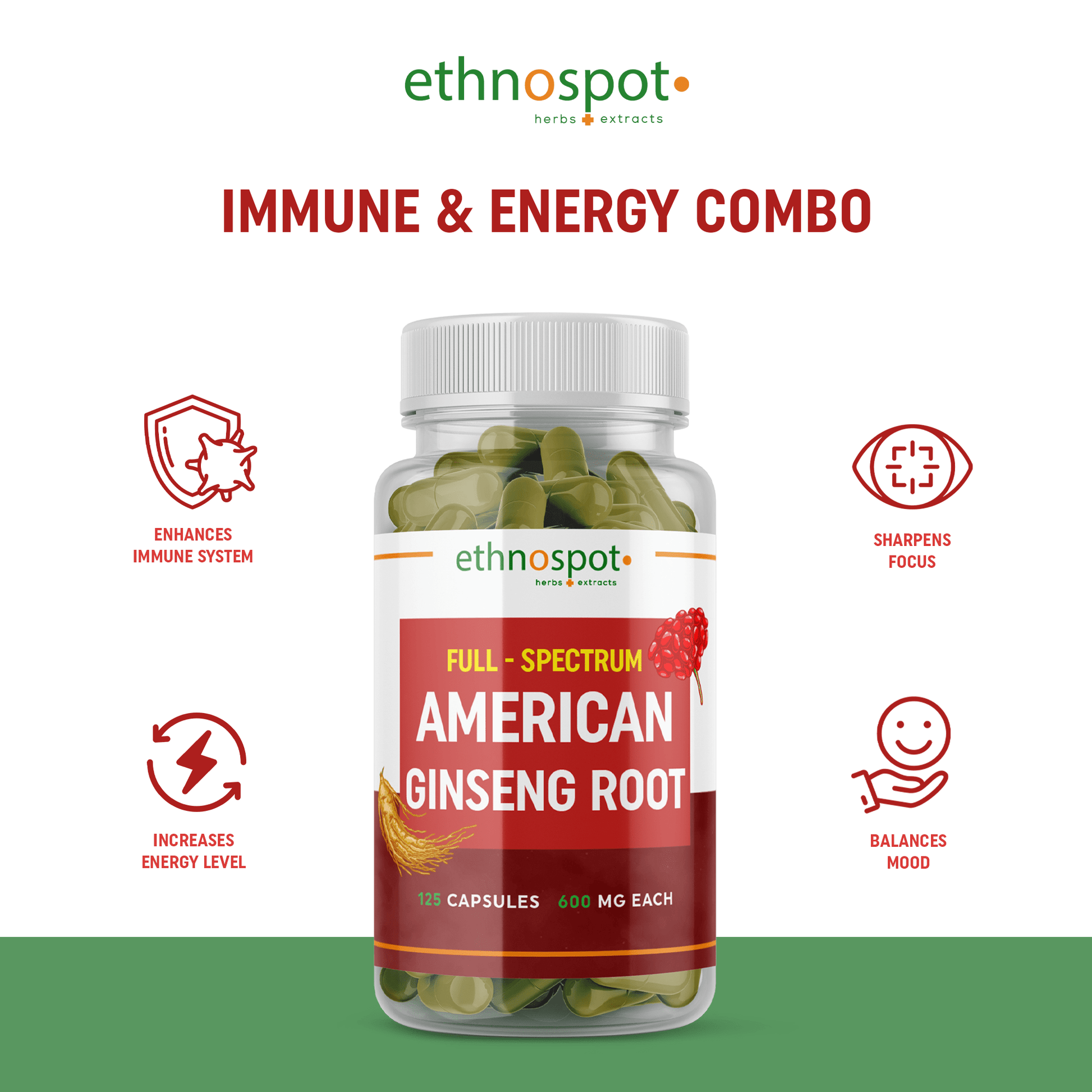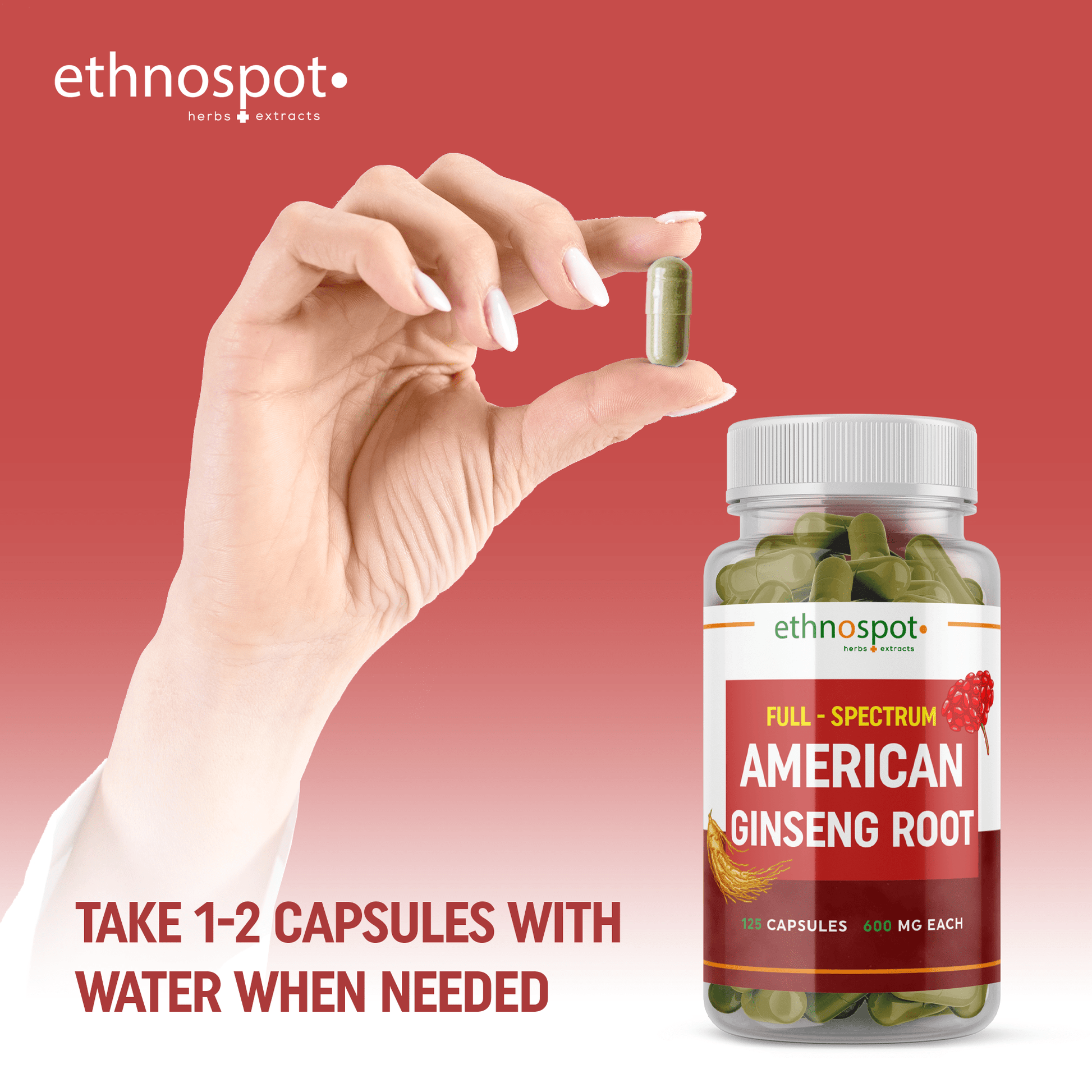 American Ginseng Capsules - Energy Boosting Herbal Supplement