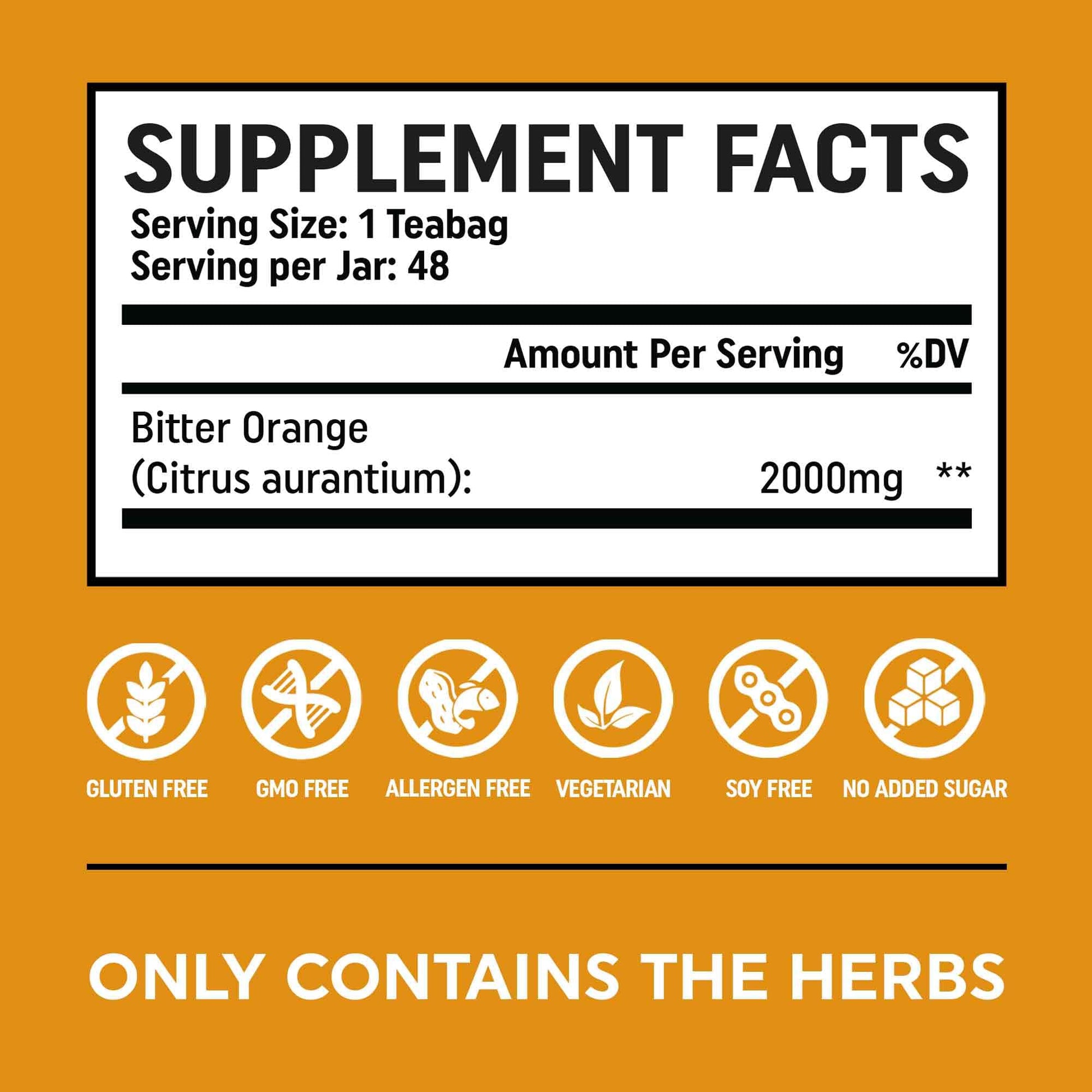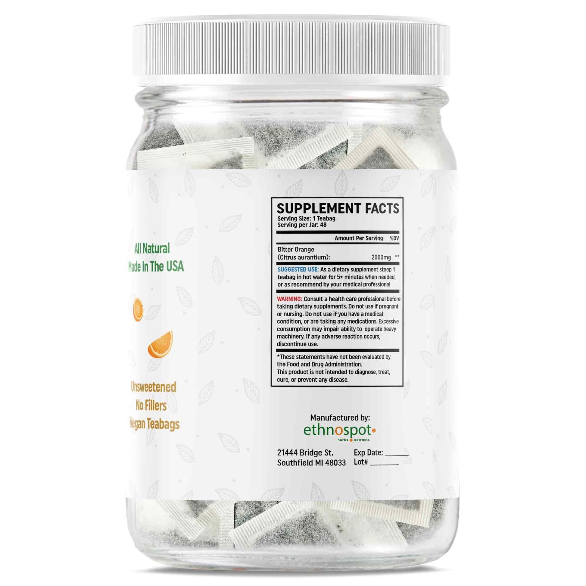 Ethnospot Herbal Supplements Bitter Orange Teabags are a delicious and natural way to get a boost of energy and vitamins. The pure Seville orange tea is made from 100% natural ingredients and is rich in antioxidants, which helps keep your appetite balanced. This uplifting tea also helps to improve digestion and is caffeine-free. Each teabag contains 2 grams of herbal tea, and the package includes 48 vegan teabags. Enjoy this herbal supplement as an alternative to coffee or sugary drinks for a healthy way to get energized.