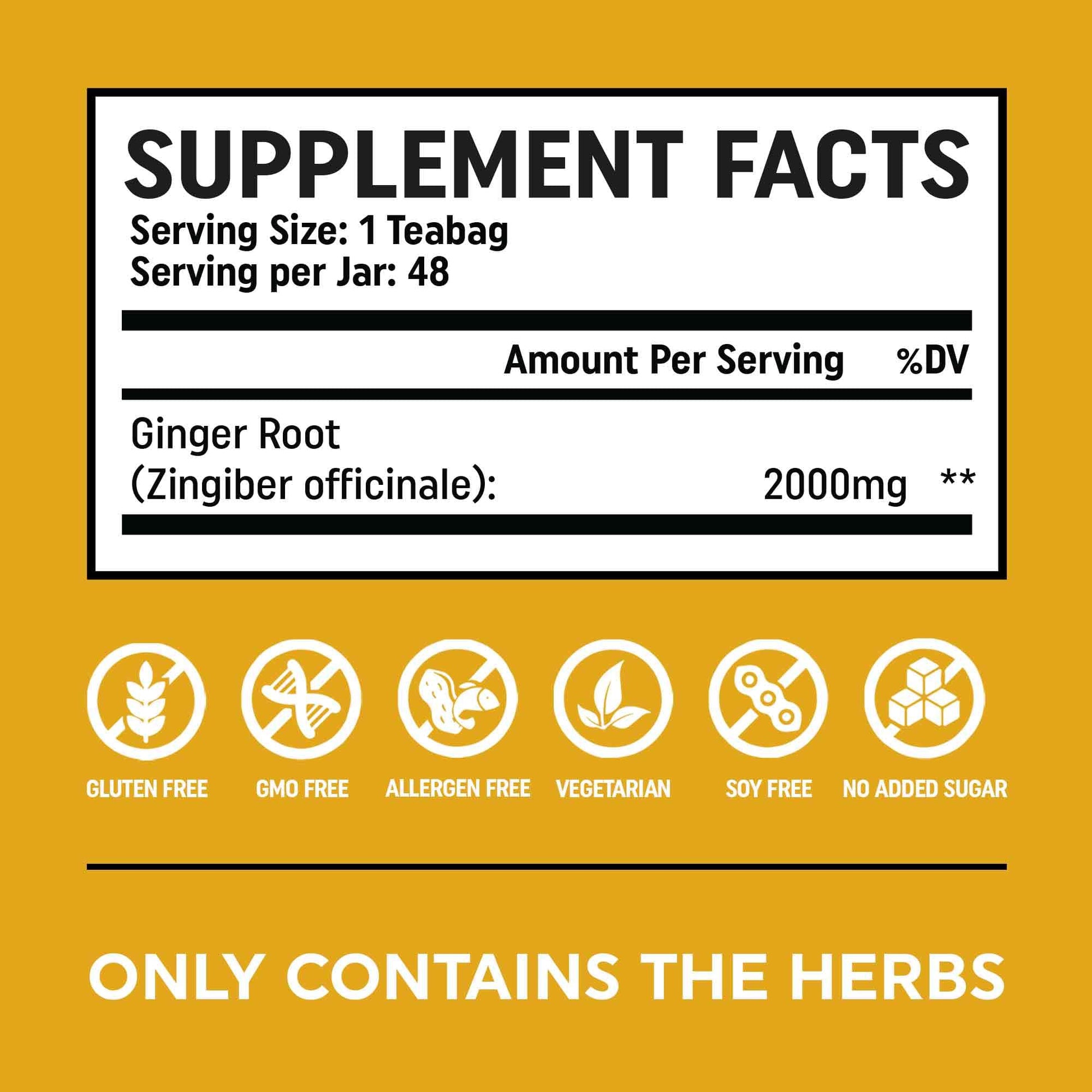 Ginger Root Teabags are the perfect way to enjoy a cup of tea that helps with digestive health. Made with pure ginger root, these teabags provide a natural source of flavor and health benefits to help reduce occasional bloating and gas. Each teabag contains 2 grams of carefully selected ginger root for maximum potency. This tea is vegan-friendly and comes in a box containing 48 teabags, so you can enjoy it every day. With Ginger Root Teabags, you can get the benefits of ginger root in an easy and convenient way.