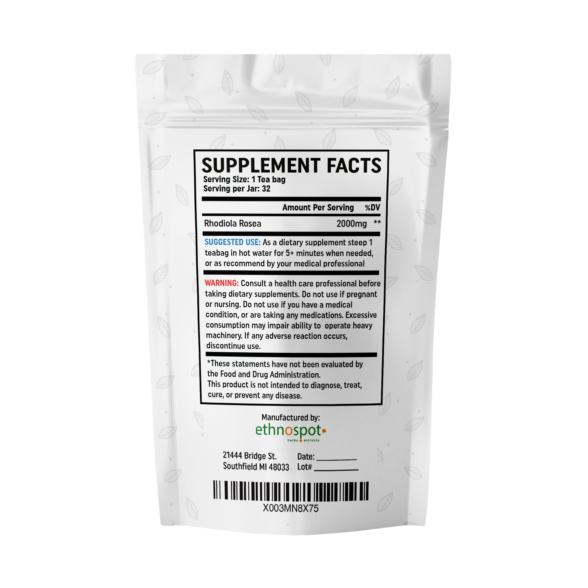 - Pure and Authentic Ingredients: Ethnospot’s Rhodiola Rosea Tea Bags are a celebration of purity and excellence. Made with 100% natural golden root, free from fillers, additives, and artificial flavors, this tea offers a clean, guilt-free option. Vegan, unsweetened, and caffeine-free, it’s an ideal choice for individuals who seek a wholesome, premium herbal tea experience.